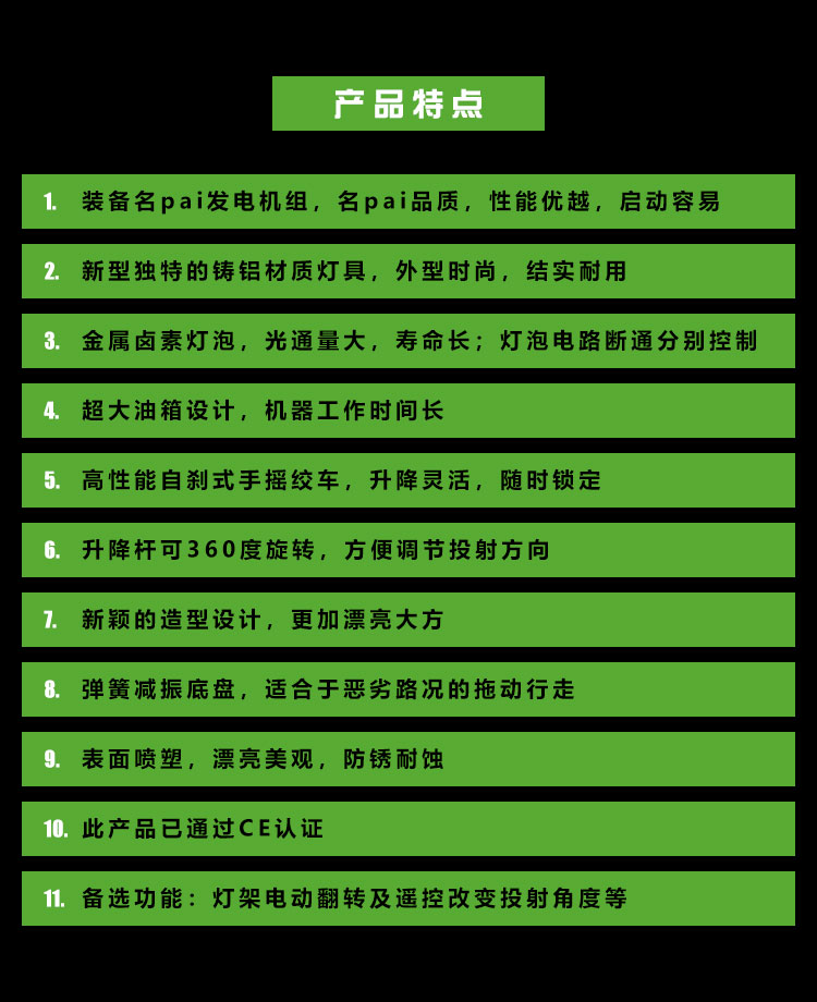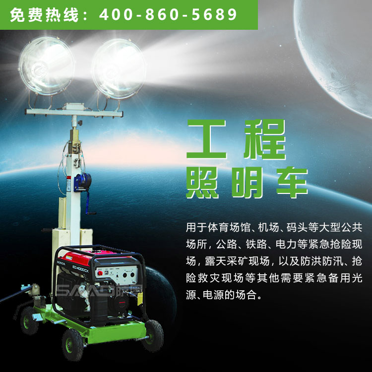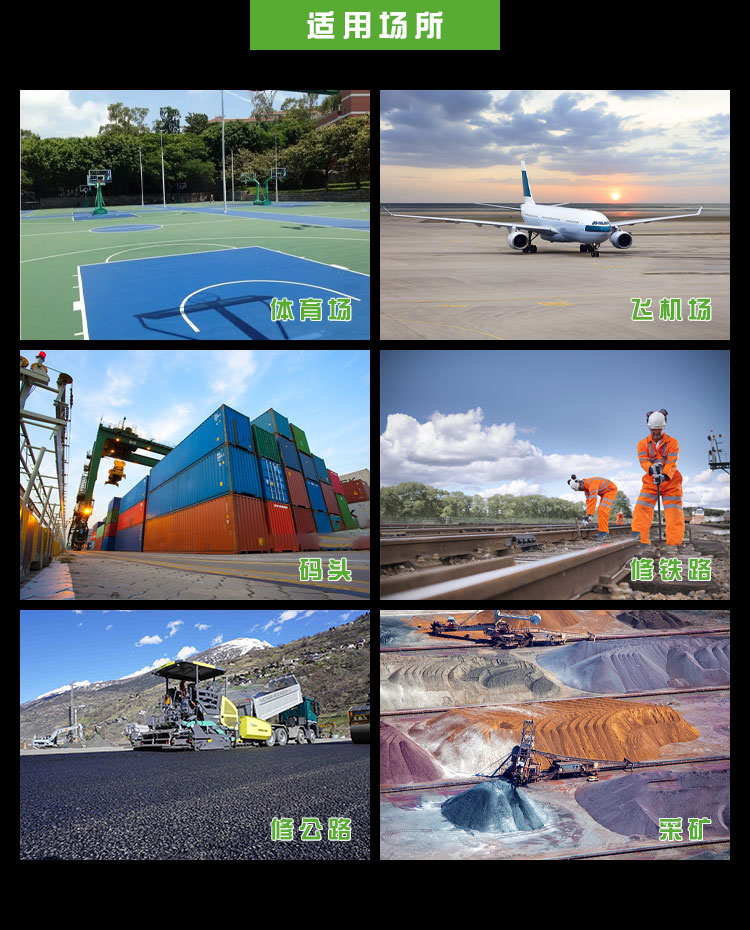 用于體育場館、機(jī)場、碼頭等大型公共場所,公路、鐵路、電力等緊急搶險(xiǎn)現(xiàn)場,露天采礦現(xiàn)場,以及防洪防汛、搶險(xiǎn)救災(zāi)現(xiàn)場等其他需要緊急備用光源、電源的場合。