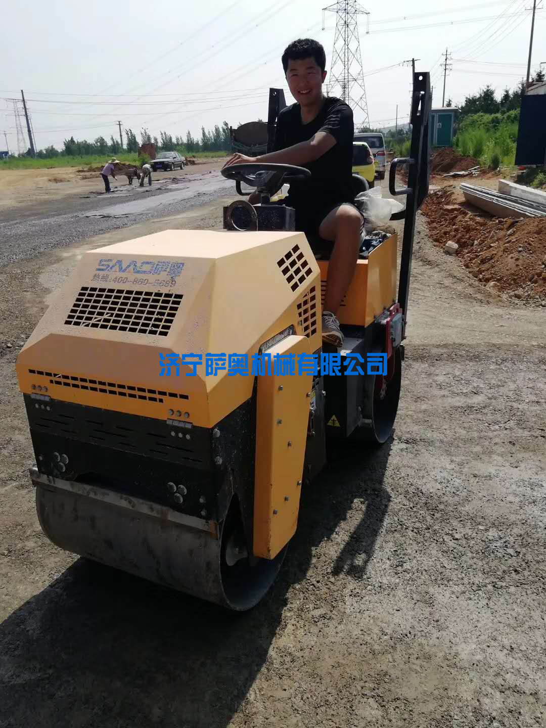 座駕振動壓路機(jī),路面壓實(shí)施工現(xiàn)場