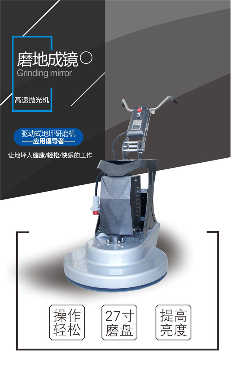 拋光機是為了讓地面表面有光澤,需要先研磨后才可以拋光。拋光分為粗拋和精拋,這時候可以使用拋光機,配合拋光墊,提高地面的光澤度。高速地坪拋光機讓你輕松完成地坪拋光工作,提高地坪亮度。