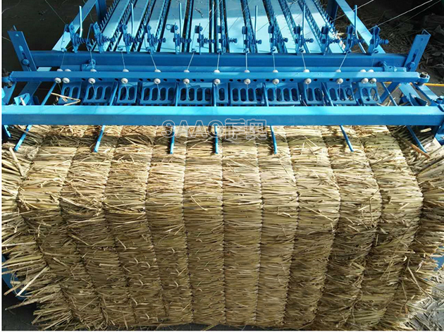 簾子打好之后,機器前方加裝了一付對滾,工作時對滾定時將草簾傳出,作用是草簾不偏跑,平整光滑。