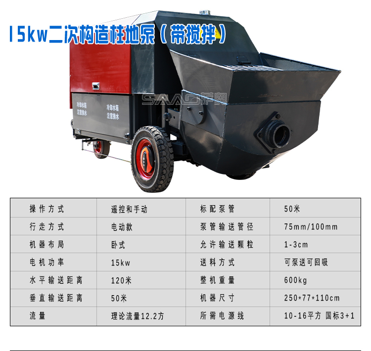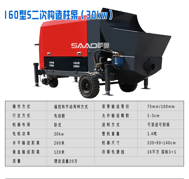 薩奧63型二次構造柱澆筑泵適用于商品房、農村建房,打二次構造柱,圈梁等,是您澆筑的好設備。電機功率小,體積小,重量輕,料斗可升降,真正能提高您的施工效率,是人工澆筑的幾十倍。