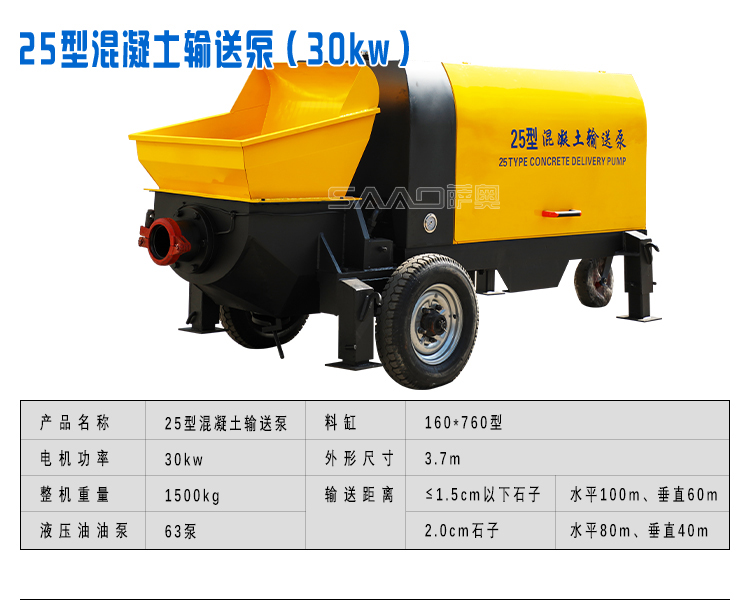 63型二次結構澆筑泵介紹: 薩奧63型二次構造柱澆筑泵適用于商品房、農村建房,打二次構造柱,圈梁等,是您澆筑的好設備。電機功率小,體積小,重量輕,料斗可升降,真正能提高