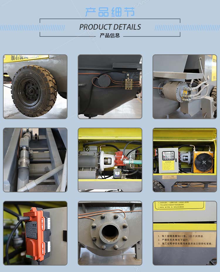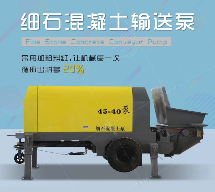 細石混凝土輸送泵采用加粗料缸,讓機械每一次循環(huán)出料多20%。
