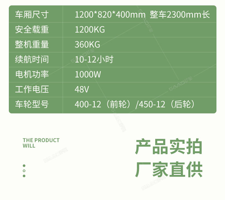 此款車適用于建筑工地、室內裝修、養殖場、工廠等場所,運輸沙子、水泥、土方、混凝土、建筑垃圾生活垃圾、養殖場動物糞便、飼料等,體積小操作簡單靈活,可原地360度轉圈,可
