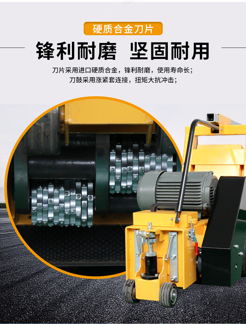 小型電動銑刨機用于橋面鋪設(shè)瀝青或車間舊的混凝土地面重新攤鋪混凝土之前,清除水泥浮漿以及鏟平拉毛,也用于清除建筑施工中遺留的堅硬灰渣。