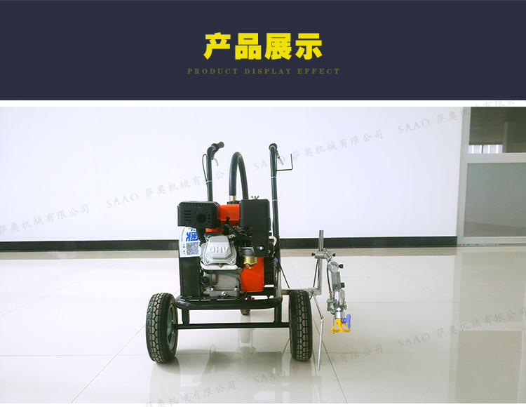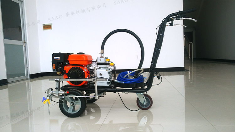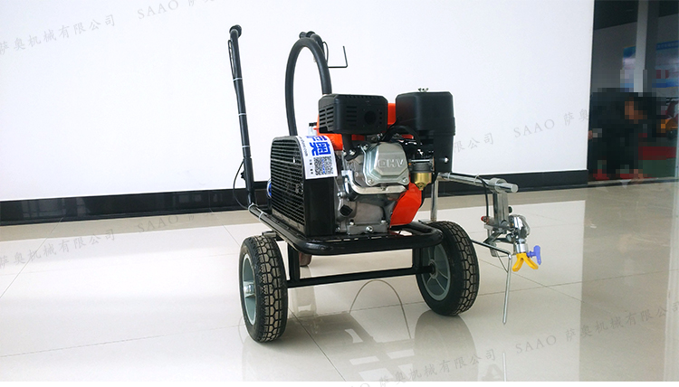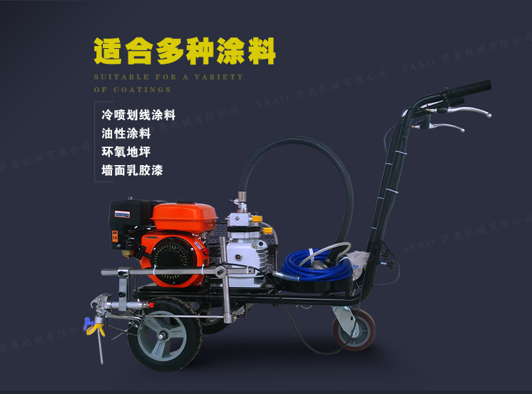 冷噴劃線機(jī)用汽油機(jī)帶動(dòng)高壓泵的無氣噴涂技術(shù)運(yùn)用于運(yùn)動(dòng)場地劃線車,噴出的線型清晰、流暢、飽滿、均勻、工作效率高。