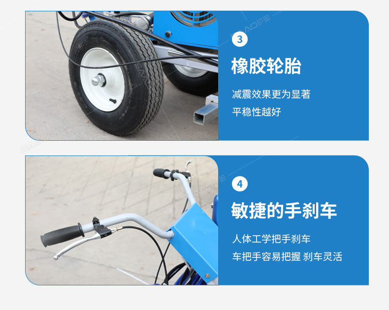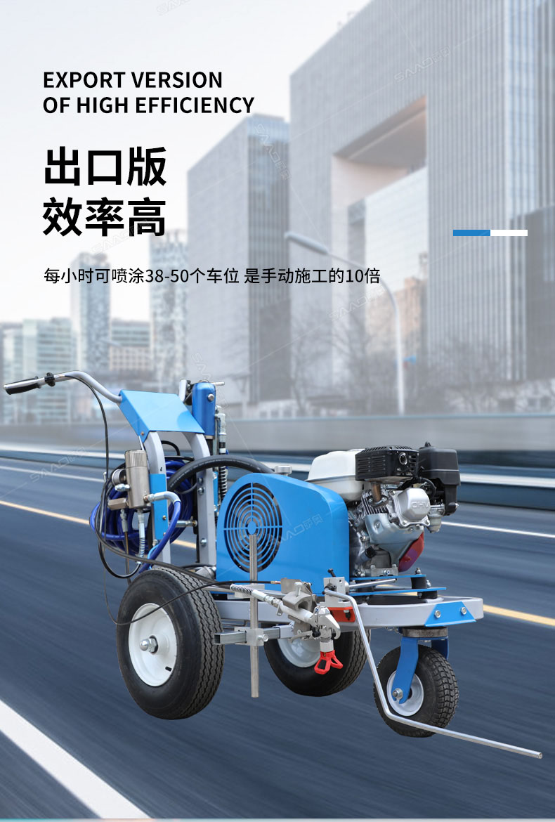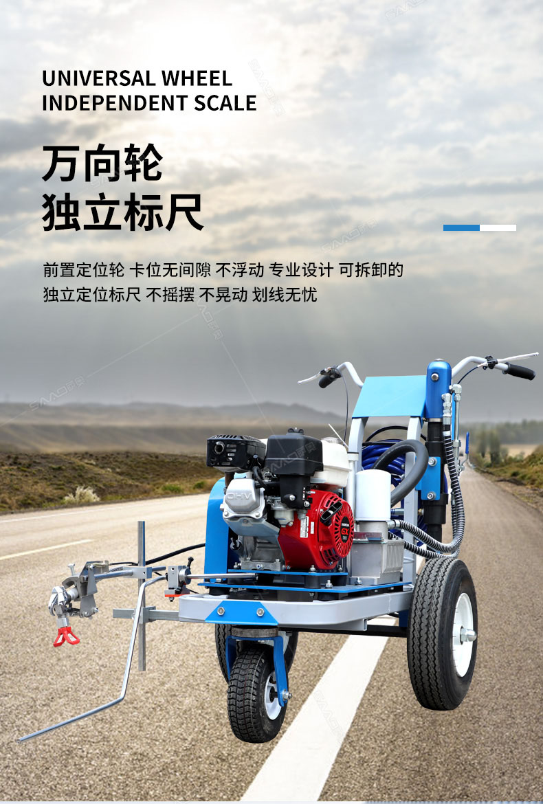 道路劃線機有冷噴式和熱熔式兩大類,冷噴式操作方便,施工快捷,可連續快速施工,越來越受到用戶青睞。熱熔式要帶上熱熔高溫爐等諸多輔助設施,施工時要間歇地從熱熔高溫爐取料,施工速度很慢,操作便捷性不夠且效率低,但一次成膜較厚。目前,比較常用的是冷噴手推式劃線機,它可運用于一般公路中小工程,運用于廠區或地下室小工程劃線施工。