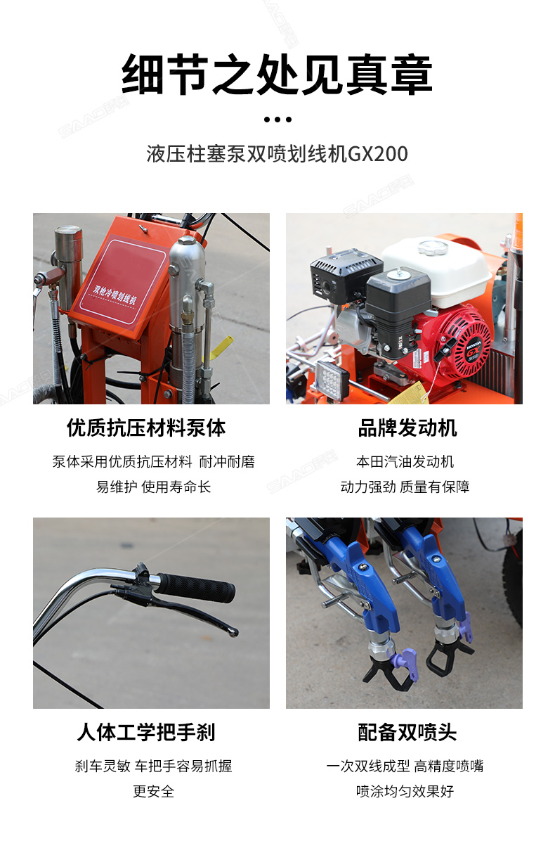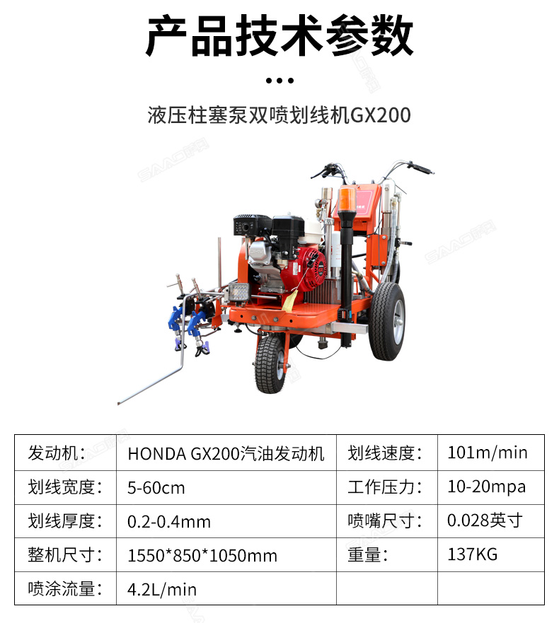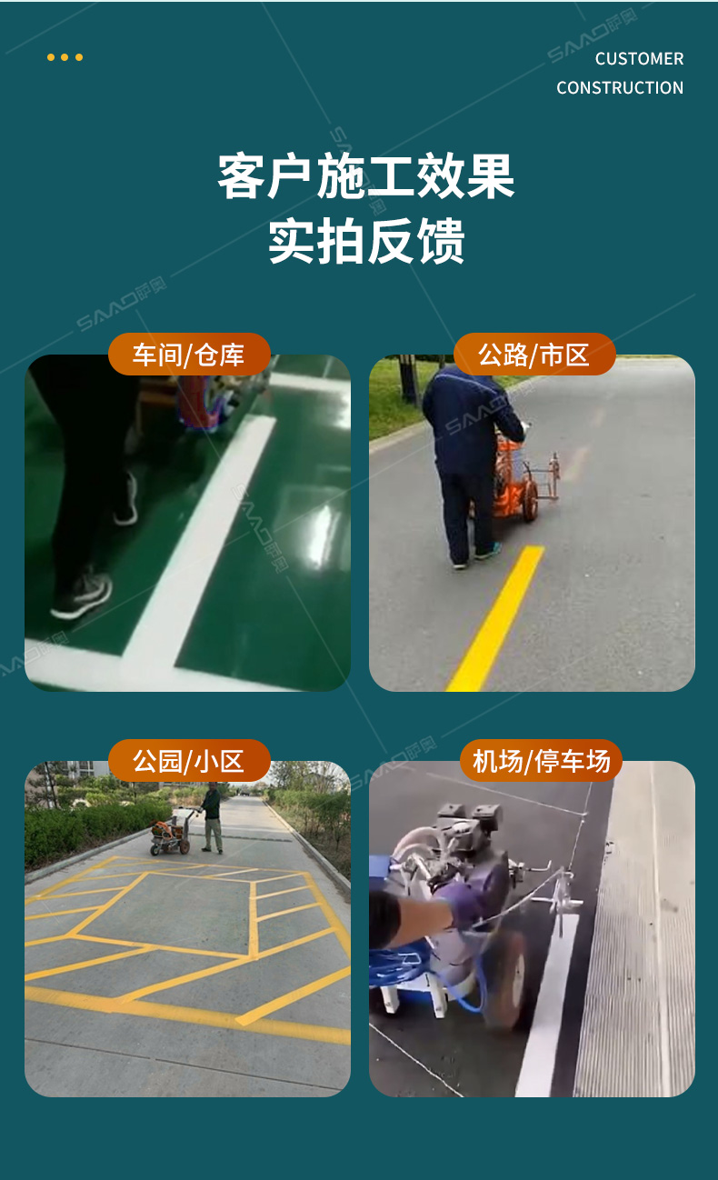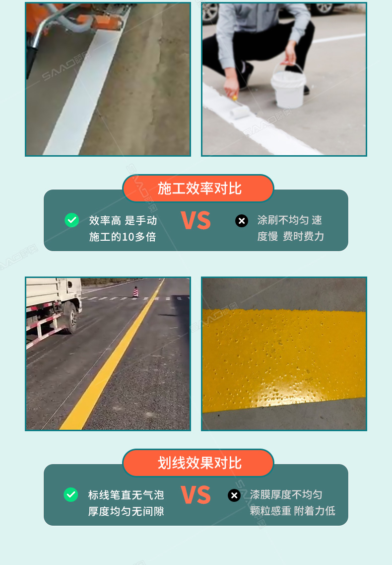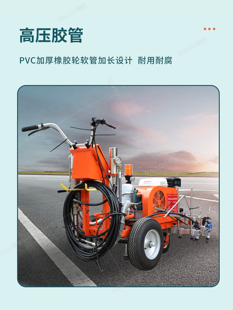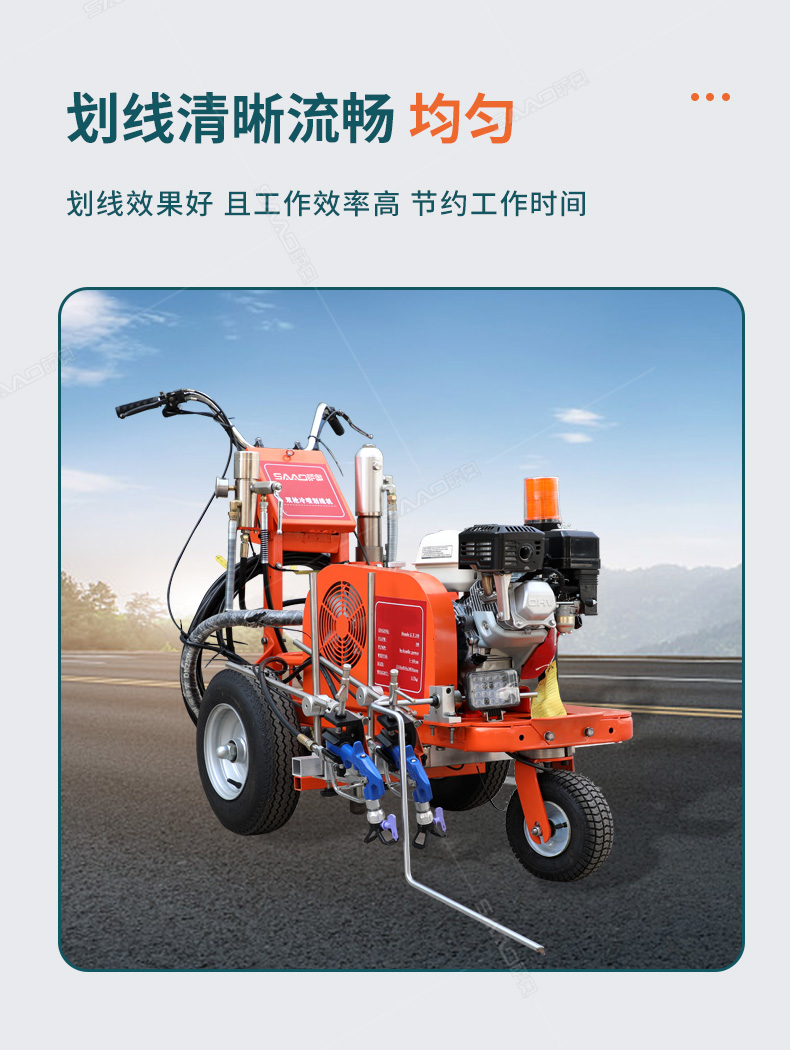 【產品介紹】 主要用于公路、市區、停車場、機場等涂劃直線、虛線、曲線、文字、箭頭等。具有劃線效果好、速度快、效率高、適用范圍廣、使用方便等優點。 【優勢特點】 1.速度