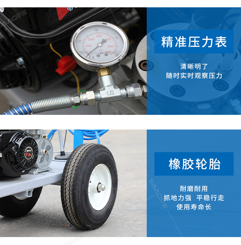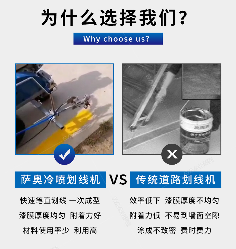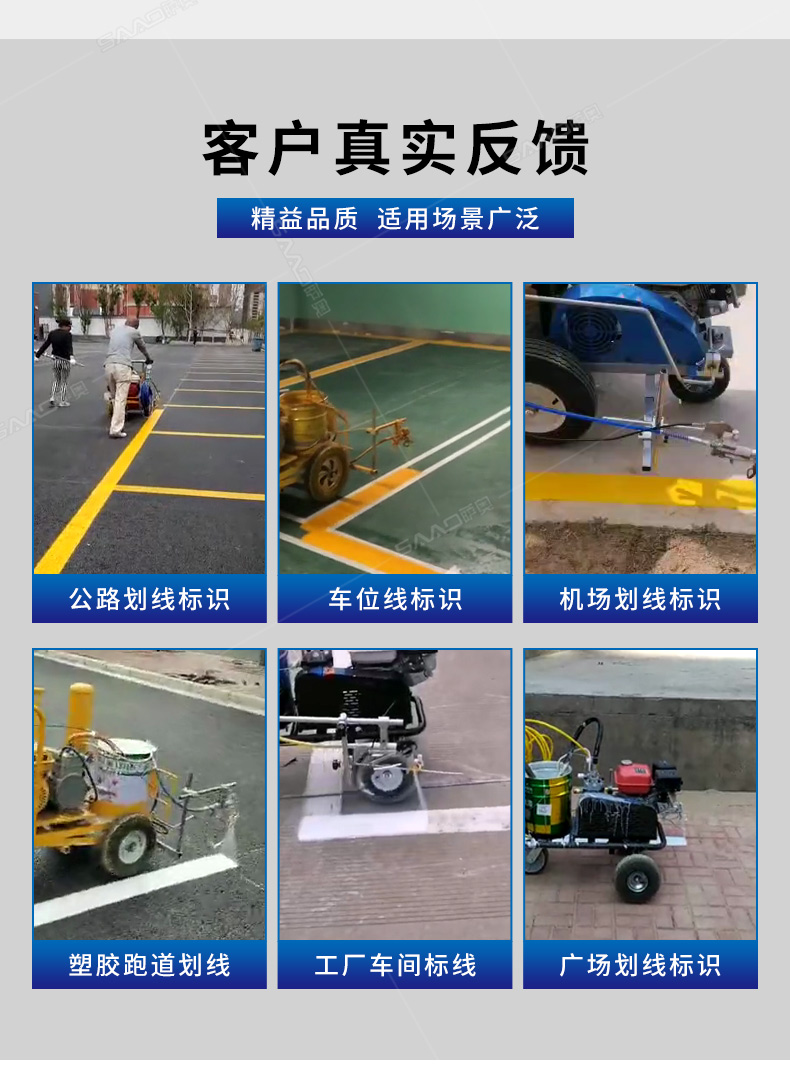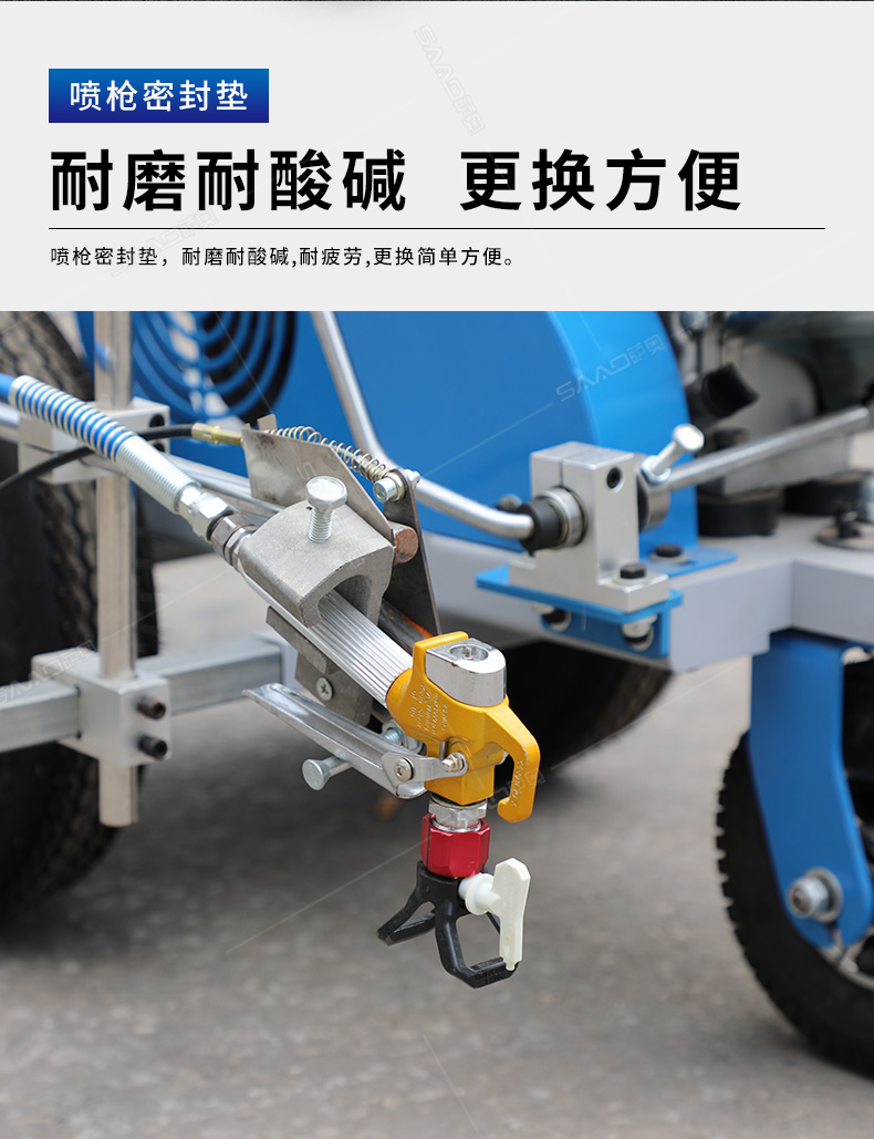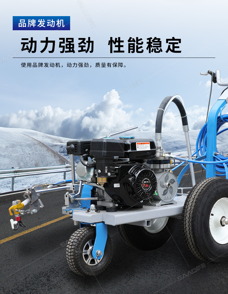 主要用于公路、市區(qū)、停車場、機場等涂劃直線、虛線、曲線、文字、箭頭等。具有劃線效果好、速度快、效率高、適用范圍廣、使用方便等優(yōu)點。 【優(yōu)勢特點】 1.高壓噴嘴劃線,準確