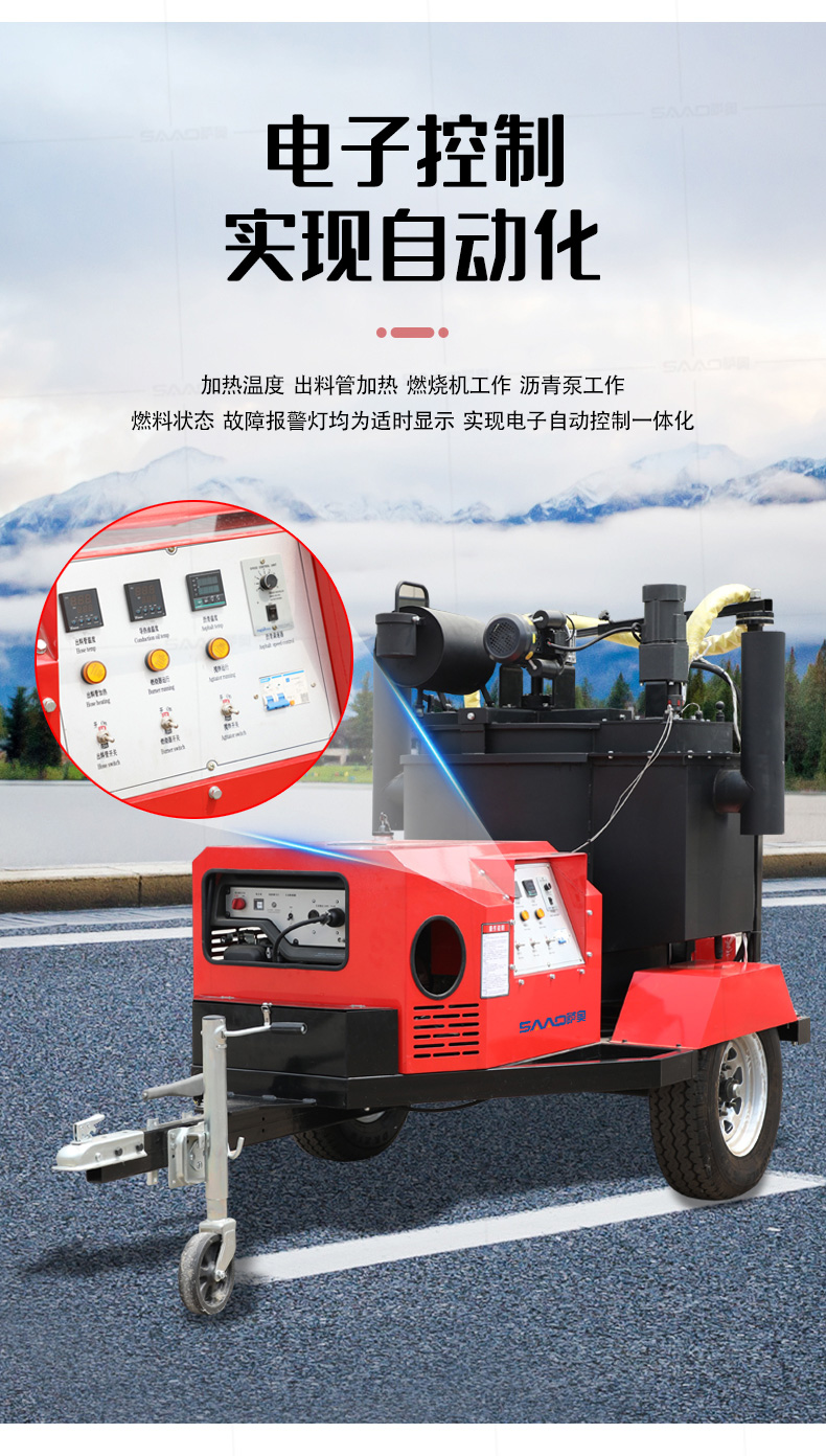 【產品介紹】 200升瀝青灌縫機適用于瀝青路面或水泥路面裂縫密封灌縫,是中型路面裂縫養護工程量施工理想設備。 自主研發生產,擁有自主知識產權的薩奧品牌,瀝青灌縫機,使用