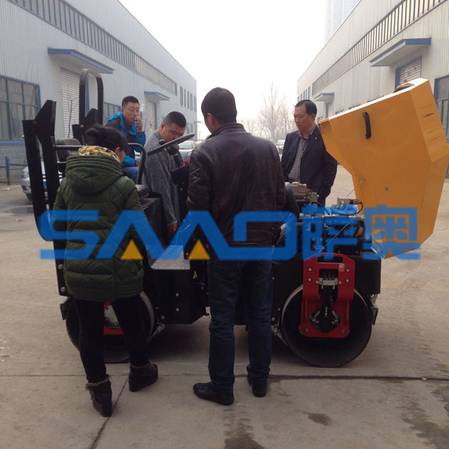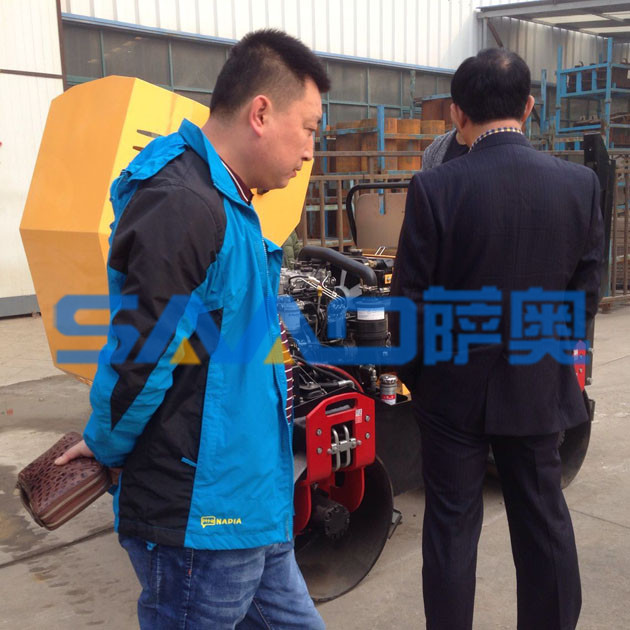 坐在駕駛座上的這位客戶(hù),開(kāi)動(dòng)機(jī)器的發(fā)動(dòng)機(jī),認(rèn)真的觀(guān)察壓路機(jī)的工作原理和基本的構(gòu)造。