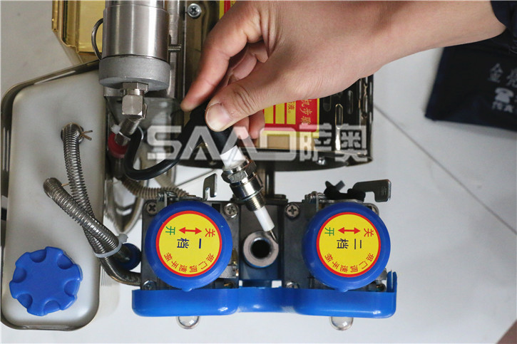 (1) 該煙霧機啟動時方法如下,用手按住點火開關(此時聽到噠、噠、噠的點火聲)握住氣筒進行打氣,機械啟動后,先預熱1分鐘左右,當聽到機械平穩而有力的聲音后,便可正常工作(一般情況下,燃料比較多時,打氣時輕一些。燃料較少時,打氣時用力一些。)啟動前檢查塑料桶蓋是否擰緊,桶蓋不嚴漏氣,機械不能正常噴霧。