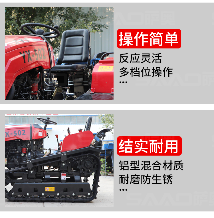 履帶拖拉機本機能完成耕、耙作業,具有碎土能力強、耕后地表平坦等特點。采用寬耕幅、對稱懸掛使輪跡全部覆蓋,有省時、省力、作業質量高成本低等特點。