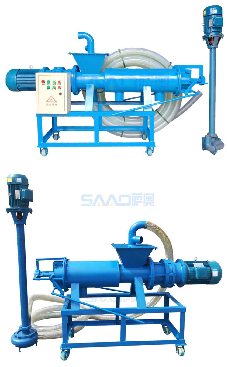 禽畜類糞便處理機能將雞糞、牛糞、豬糞等禽畜糞便原糞水分離為液態有機肥和固態有機肥。液態有機肥可直接用于農作物利用吸收,固態有機肥可運到缺肥地區使用,也可起到改善土壤結構的作用,同時經過發酵可制成有機復合肥。用泥漿泵將原糞水送至機內,通過安置在篩網中的螺旋軸,擠壓分離出固態物質,液體則通過篩網從出液口流出。