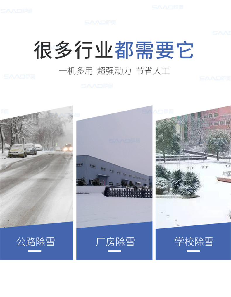 小型掃雪車由中型卡車或重型卡車、四缸汽車發動機、吸 雪管、鼓風機、排雪管、吸雪口、吸雪口液壓升降裝置、 旋轉式清掃刷、清掃刷連桿、固定架、 清掃刷液壓