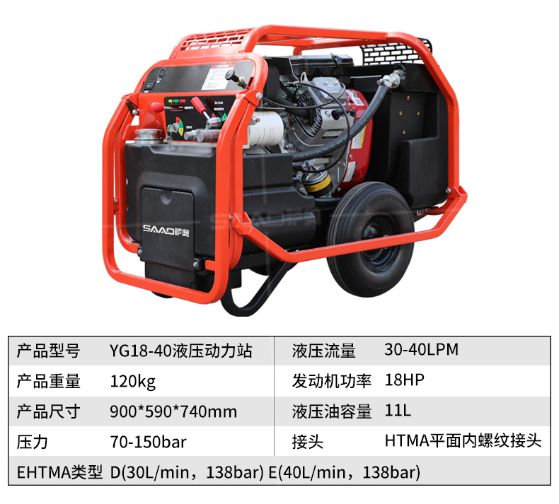 【產品介紹】 在公路市政養護、燃氣自來水搶修、地震和消防救援作業中提供方便可靠的動力源。 【產品特點】 進口原裝液壓馬達,壽命長,壓力高,流量大; 優質快速接口,連接液