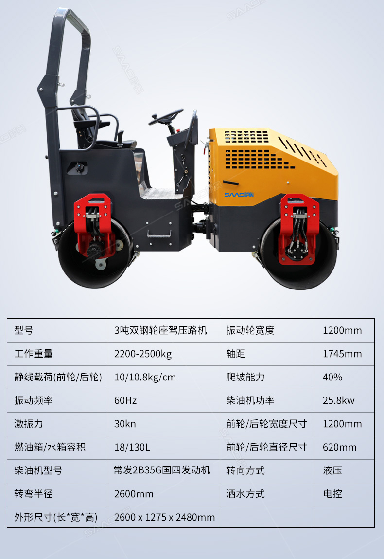 SYL-1100 3噸雙鋼輪座駕壓路機(jī)