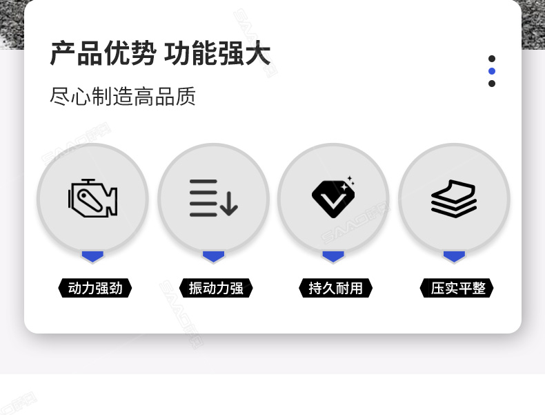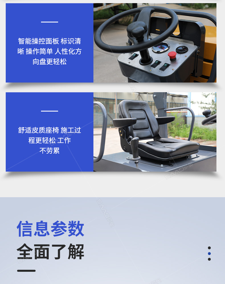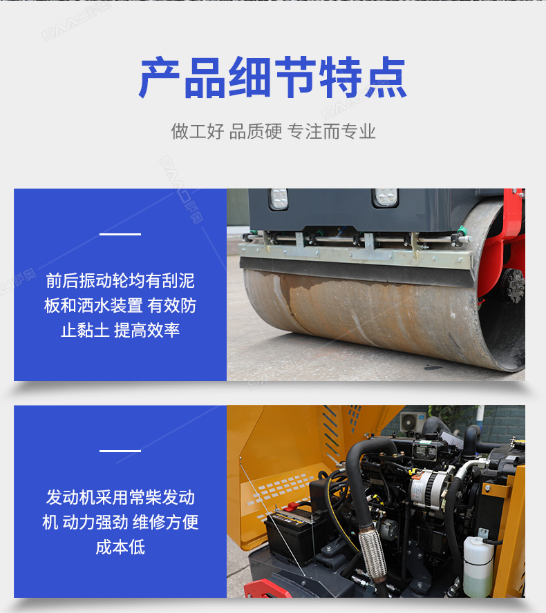 【產(chǎn)品介紹】 小型壓路機(jī)主要用于溝渠基礎(chǔ)、道路、體育場地的壓實(shí)整平,瀝青表面的作業(yè),礫石、沙土等工程基礎(chǔ)壓實(shí)修復(fù),學(xué)校操場跑道和碾壓草坪等。 【產(chǎn)品優(yōu)勢】 1、一臺高性