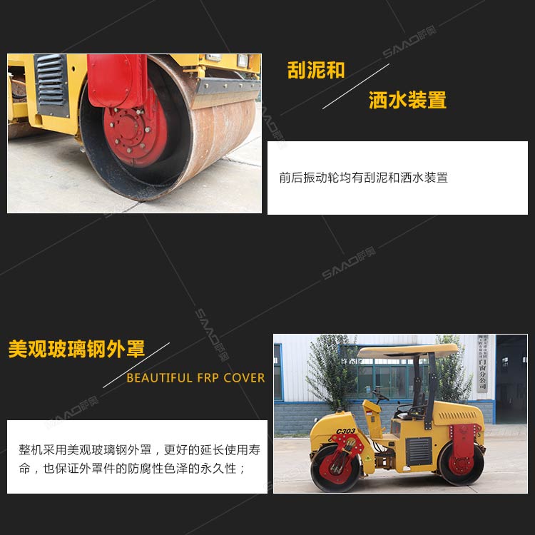 4,前后振動(dòng)輪均有刮泥和灑水裝置;